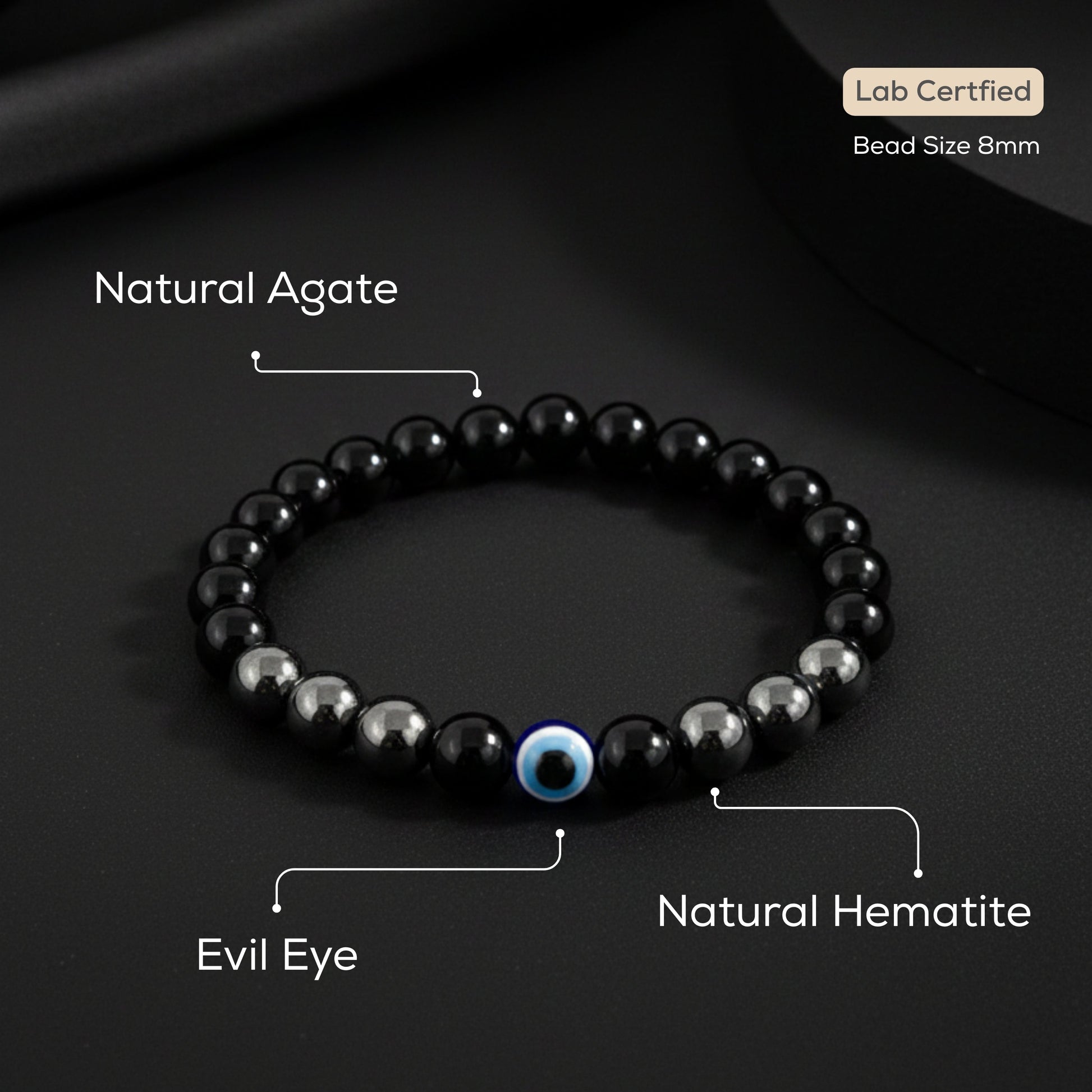 Natural Hematite Evil Eye Bracelet
